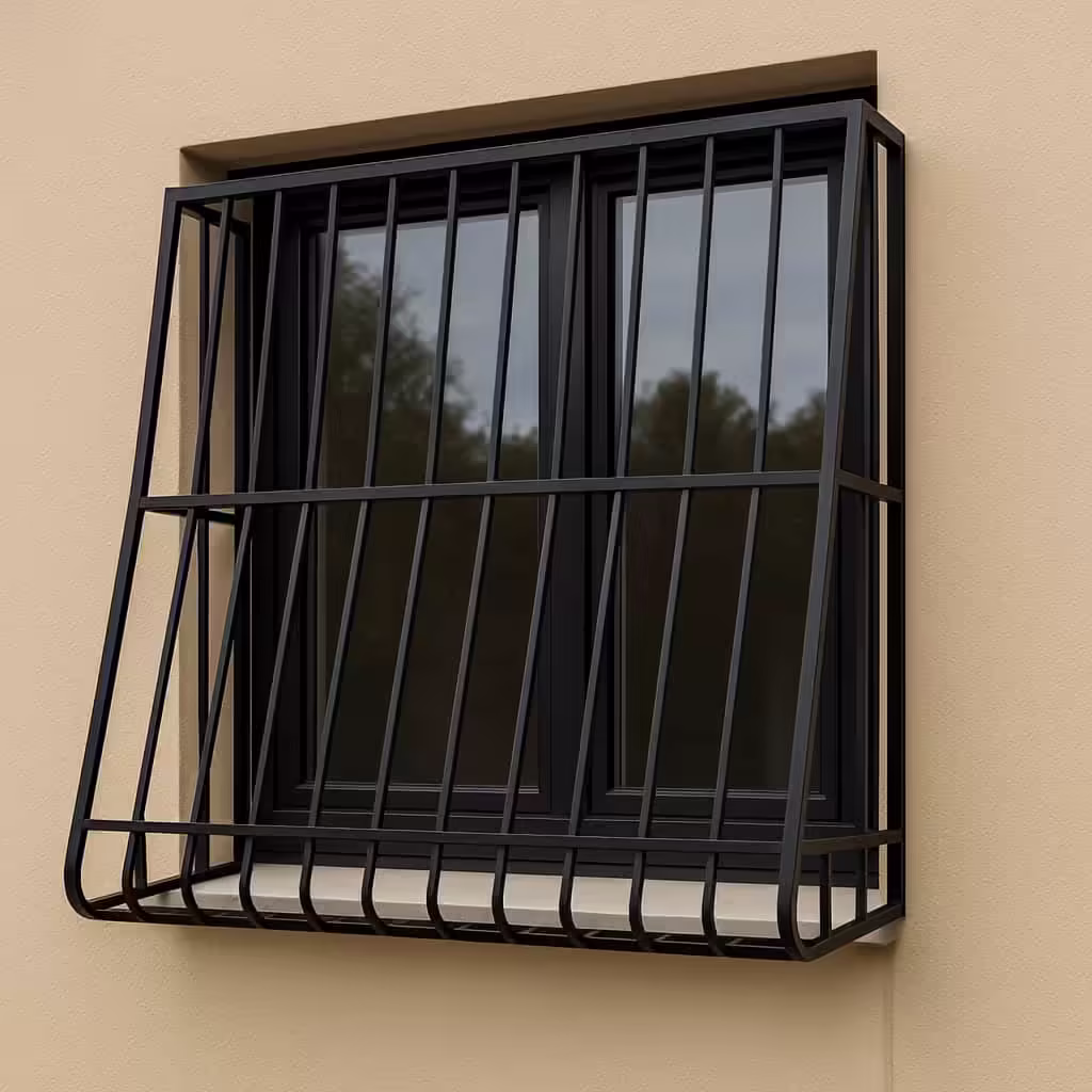 نصب این مدل حفاظ به راحتی انجام می شود و به طور عمده برای پنجره های طبقه همکف یا واحدهای مسکونی با فضای بیرونی مناسب استفاده می شود. این حفاظ ها به صورت ثابت یا بازشو (لولایی) با قفل ایمنی قابل نصب هستند و به راحتی می توانند همزمان به عنوان جاگلدانی برای چیدمان گیاهان طبیعی یا مصنوعی نیز عمل کنند. نصب آن با پیچ و پلاک مقاوم و مهار استاندارد صورت می گیرد.